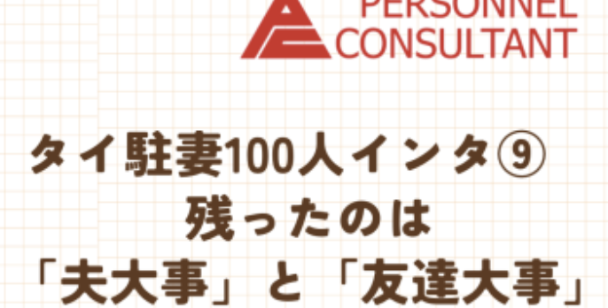 ご夫婦が出会ったきっかけは、同じ大学13%、同じ職場25%、小/中/高・趣味・バイト・外国繋がり等23%、その他合コン・飲み会・コンパ・紹介・マッチングアプリ等39%。大雑把な表現になりますが、インタビュイーの半数以上は、仲間・同僚・友達等という形でご夫婦の元々の立ち位置が並んでいたと見受けました。また、インタビュイー及びその配偶者の年齢は、家庭科共修世代/アラフォー以下が8割以上を占め、仕事も家のこともお互いにするのが当たり前になってきている、ということもひしひしと感じました。この点、内閣府の「男女共同参画社会に関する世論調査」(令和6年9月調査)で「夫は外で働き、妻は家庭を守るべきである」という性別役割分担に対する「反対」が全体の約3分の2を占め、若い世代になればなるほどその割合が高かったことと重なります。それだけに、駐在・帯同によって、夫婦の関係性や分担に大きな変化が生まれることに妻が戸惑い、大きなストレスや不安を抱くのも、現代の構図的に多分に起こりえることかと。手を携えて共に歩んできて、タイに来てからも夫は前に進んでいるのに自分は取り残されてしまったような感覚……。中には、「夫の稼ぎで十分なら、自分が働かなくても夫が家にいなくてもいい」という方や「暫し仕事を忘れて育児に専念できるしタイ自体も最高」という方もいたので、100人全員の意見ではありませんが、少なくない方たちが、夫婦のあり方の変化や自身の停滞感にやり場のない気持ちを抱えていました。